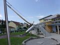 Mit einem zweiten Seil am nebenstehenden Masten wird das Segel aufgespannt und kann individuell in