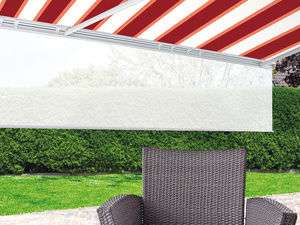 Die praktische Doppelmarkise (Vario Volant, Volantrollo) ist ein raffinierter Trendsetter mit spürbarem Nutzen und echtem Mehrwert. Die Doppelmarkise kann bis zu 1,70 m senkrecht am Ausfallprofil herunterfahren (mit Kurbel oder per Fernbedienung mit Funkmotor) werden, um die Schattenfläche deutlich zu verbessern. Zusätzlich bietet die Senkrechtmarkise sehr guten Blendschutz bei tiefstehender Sonne. Die Soltis Tuchdessins ermöglichen ein Hinaussehen, schützen aber vor neugierigen Blicken von außen.