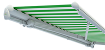 Offene Gelenkarmmarkisen werden vor allem für Bereiche verwendet, bei denen sich die geschlossene Markise in einem geschützten Bereich befindet, z.B. Dachüberstand. Das eingefahrene Tuch und die Technik (inklusive Gelenkarme) liegen offen und sind damit den Witterungsverhältnissen relativ ungeschützt ausgesetzt. Als Basisschutz ist optional ein Regendach erhältlich. Die hochwertigen Aluminium- und Edelstahlbauteile sind deshalb, wie bei allen unseren Markisen, dauerhaft witterungsbeständig. Der Volant ist bei der offenen Gelenkarmmarkise der einzige Blickschutz auf Technik und Arme, diese sind von unten immer sichtbar. Offene Gelenkarmmarkisen finden ihren klassischen Einsatz in geschützten Bereichen auf Balkon und Terrasse.