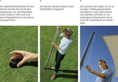 Zwei schräg stehende Stützen mit Bodenplatte, ø 40 mm, Höhe 3 m. Verankerung der Abspannseile und Stützen über Erdnägel.