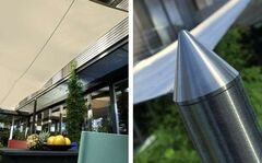 Starre Sonnensegel müssen vor Schlechtwetterlagen bzw. vor Aufziehen von Gewittern demontiert und eingelagert werden.