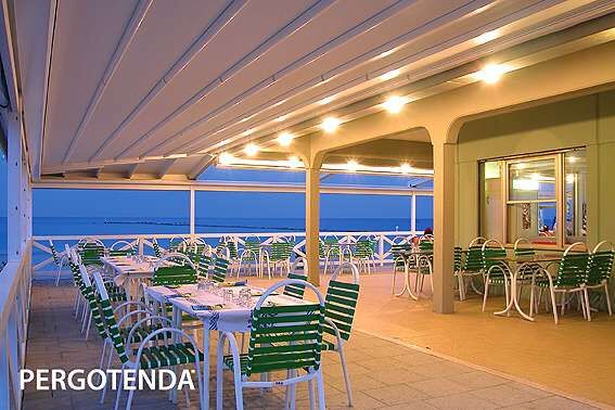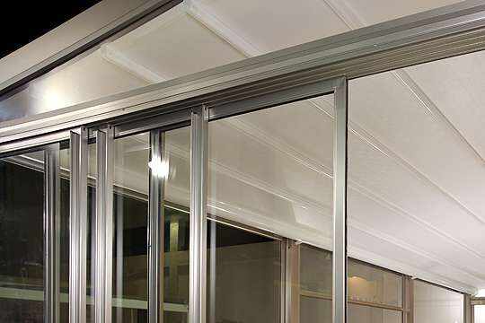 Die Glas-Schiebetüren dienen der Pergotenda als Außenwände, die vor witterungsbedingten Einflüssen wie Wind und Regen schützen. Der Rahmen, in Alluminium Legierung 6060 gefertigt, besteht aus 2, 3 oder 4 Schienen.