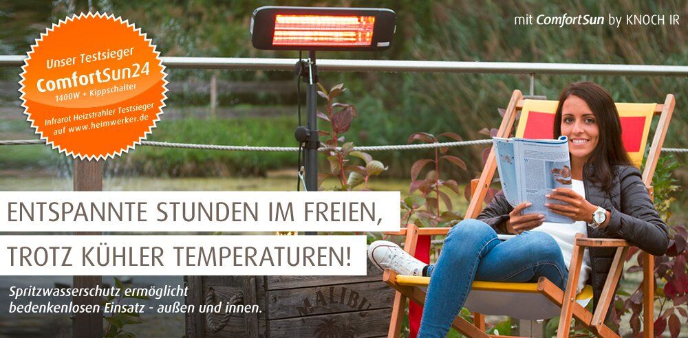 Wohlige Infrarot-Wärme unter der Markise, der Überdachung, auf dem Balkon oder dem Sonnenschirm – diese Vorstellung steht für romantische Sommerabende, wetterunabhängige Stunden im Freien. Unsere Infrarot Heizstrahler profitieren von den langjährigen Erfahrungen in der Licht-Wärme-Systementwicklung. Die vielseitig einsetzbaren Heizstrahler wandeln 90% der aufgewendeten elektrischen Energie in Wärme um. Kein anderes System schafft das! Lernen Sie die Vorteile der neuen ComfortSun Infrarot Heizstrahler kennen und nutzen Sie die perfekte Ergänzung für entspannte Wohlfühl-Momente zu Hause, im Garten oder am Arbeitsplatz.