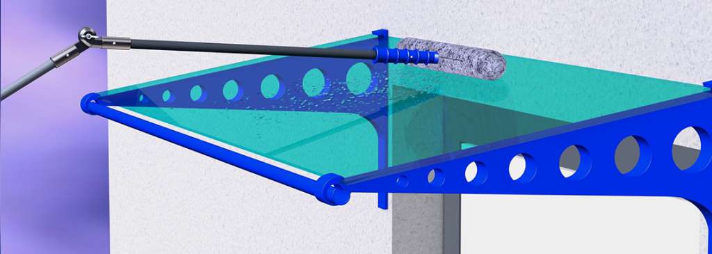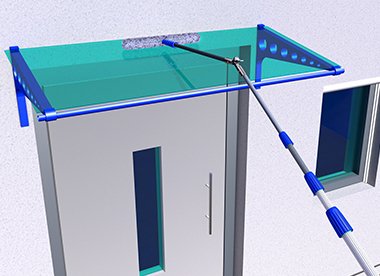 Mit diesen Reinigungssystemen lässt sich ihre Überdachung bequem vom Boden aus reinigen. Ein variables System aus Teleskopstangen und Gelenkaufsätzen erreicht auch schwer erreichbare Stellen ihres Daches und können so auch die Oberseite ohne Leiter oder akrobatische Leistungen reinigen.